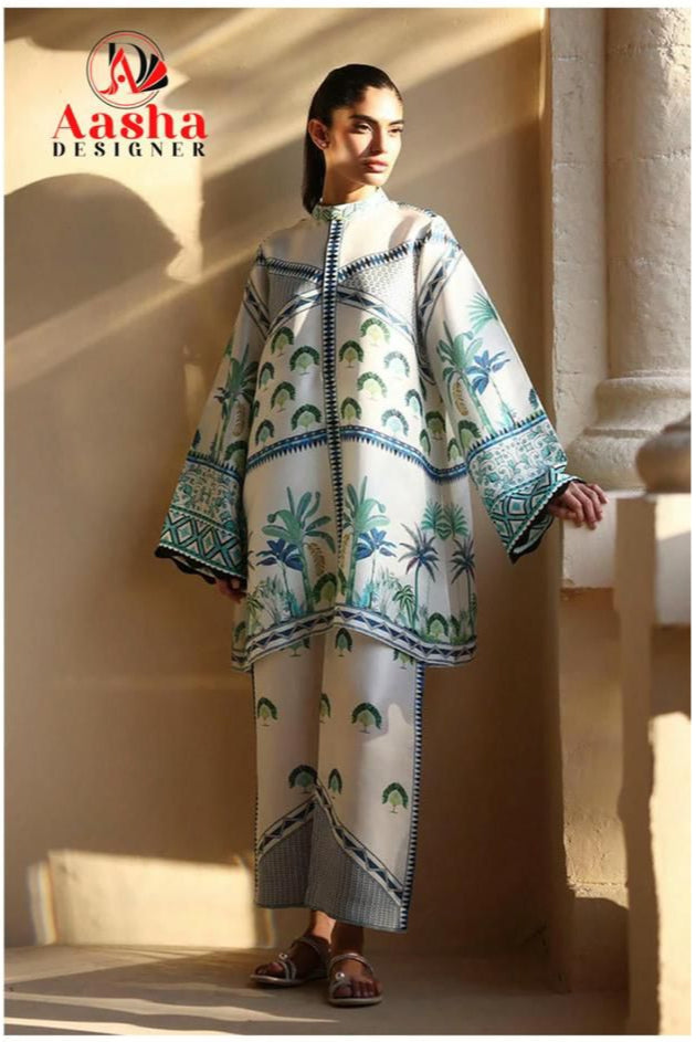 Aasha Designer 10038 Modal Satin Print Cord Set