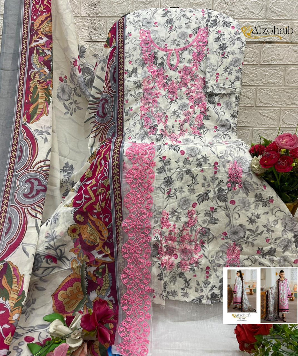 AI Zohib 1400 Pure Cotton Embroidered Work Pakistani Suit