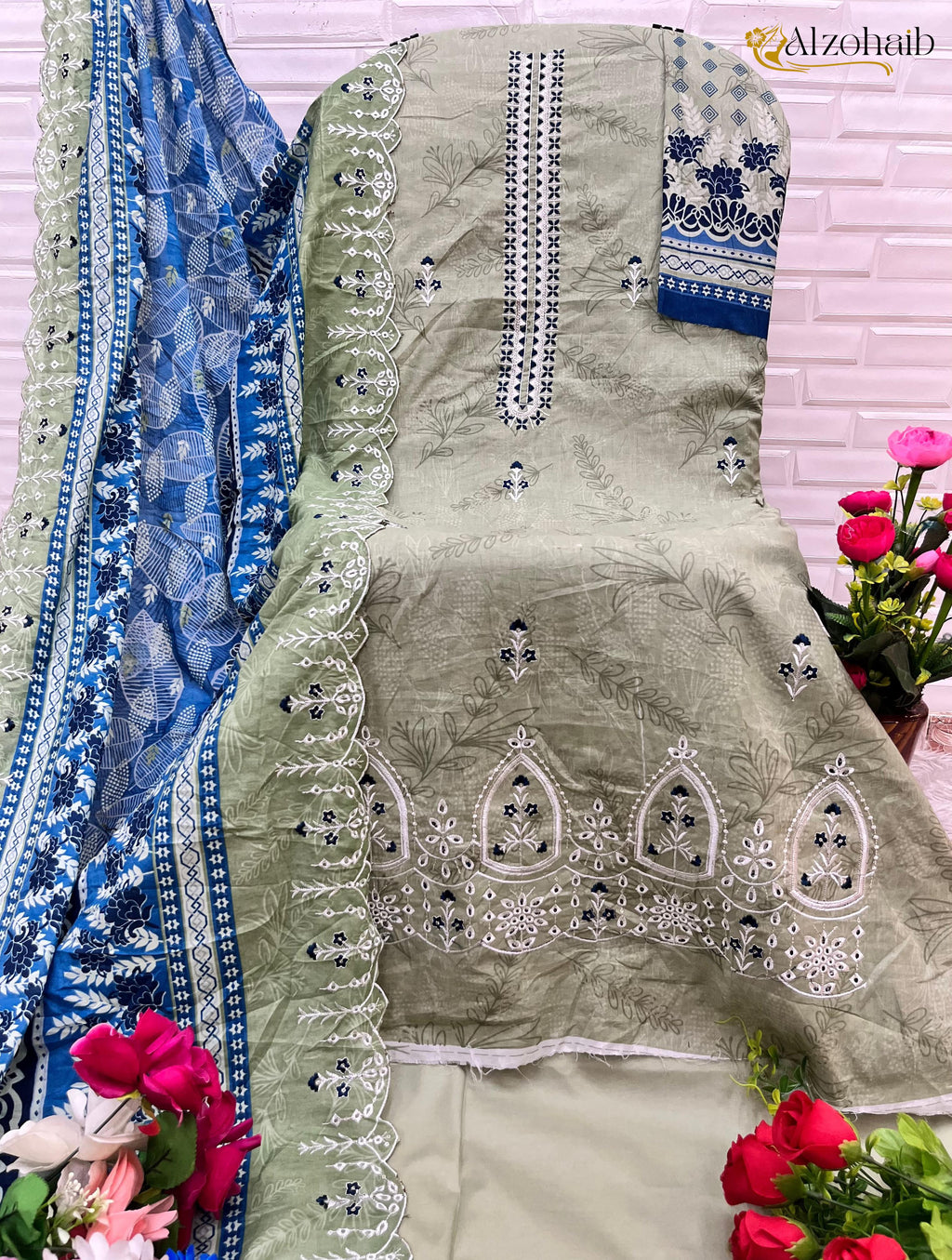 Al Zohaib 1086 Pure Cotton Print With Embroidery Self Work Pakistani Suits