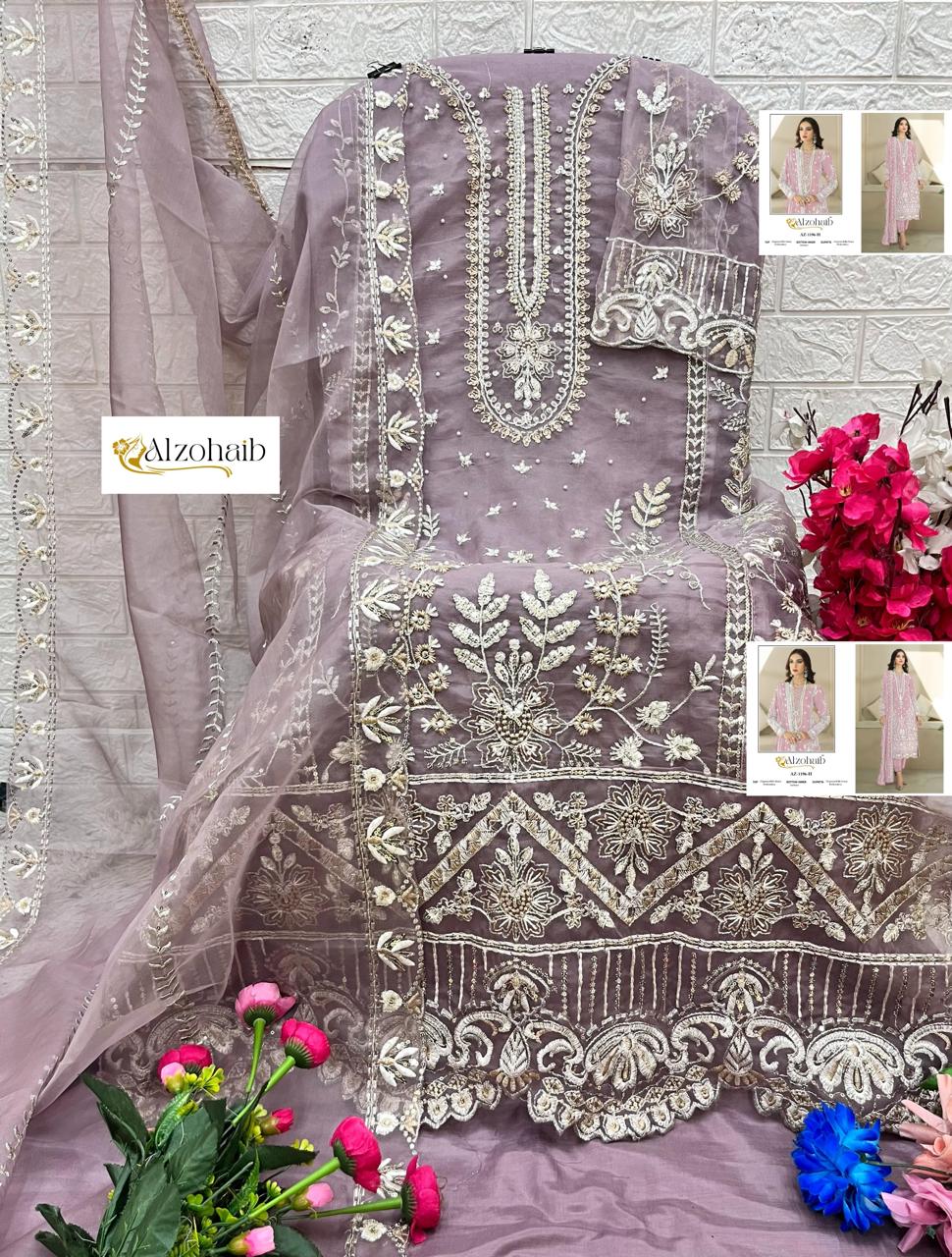 Al Zohaib 1196 H Organza Lavender Emboridery Work Pakistani Suits