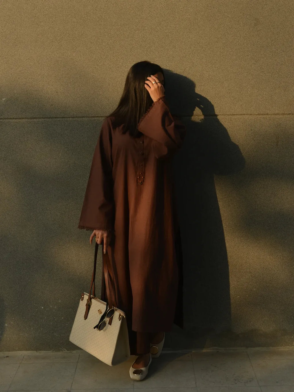 The solid brown tone adds a minimal yet classy look, making it suitable for casual outings, office wear, family gatherings, or modest styling. Pair it with flats or heels and a structured bag for an effortlessly polished outfit.