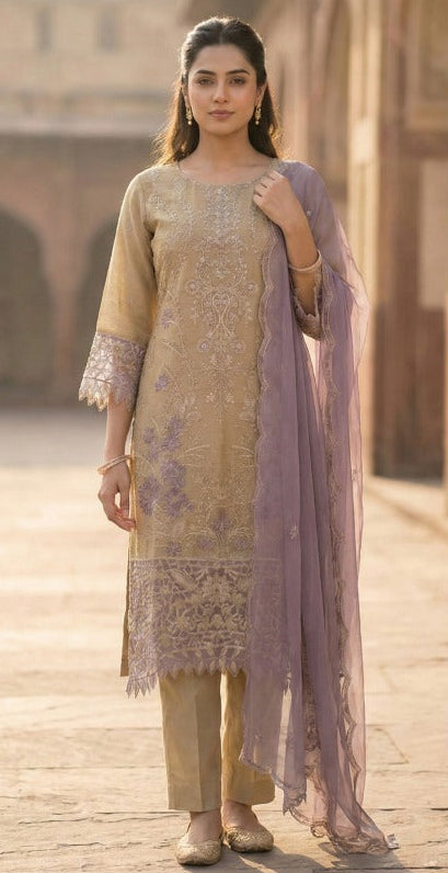 Elevate your ethnic style with this elegant suit set from FEPIC – Rosemeen Catalogue, Design No. 6454 C . Crafted using soft and flowy chiffon fabric, this outfit offers a graceful fall and a refined look, perfect for festive occasions, parties, and evening wear.