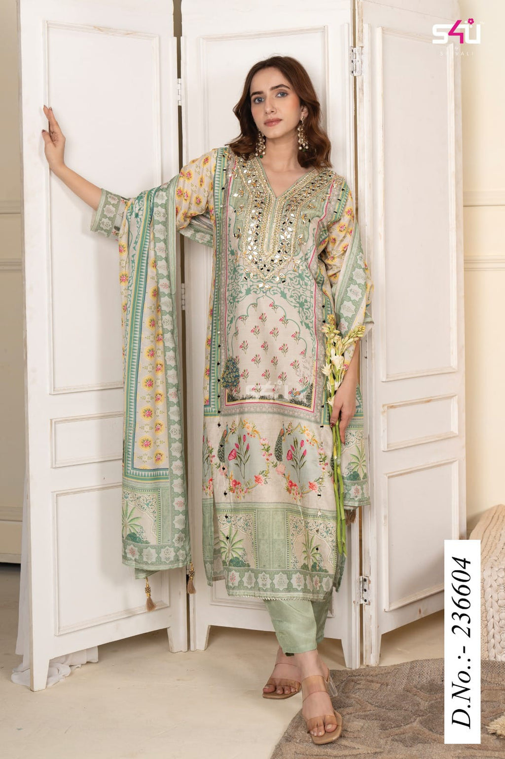 Elevate your festive wardrobe with this stunning Women’s Designer Festive Wear Kurti Set with Handwork from S4U by Shivali. Crafted from a luxurious blend of georgette, chinon, silk, and muslin fabrics, this outfit offers a rich texture with a graceful and elegant fall.