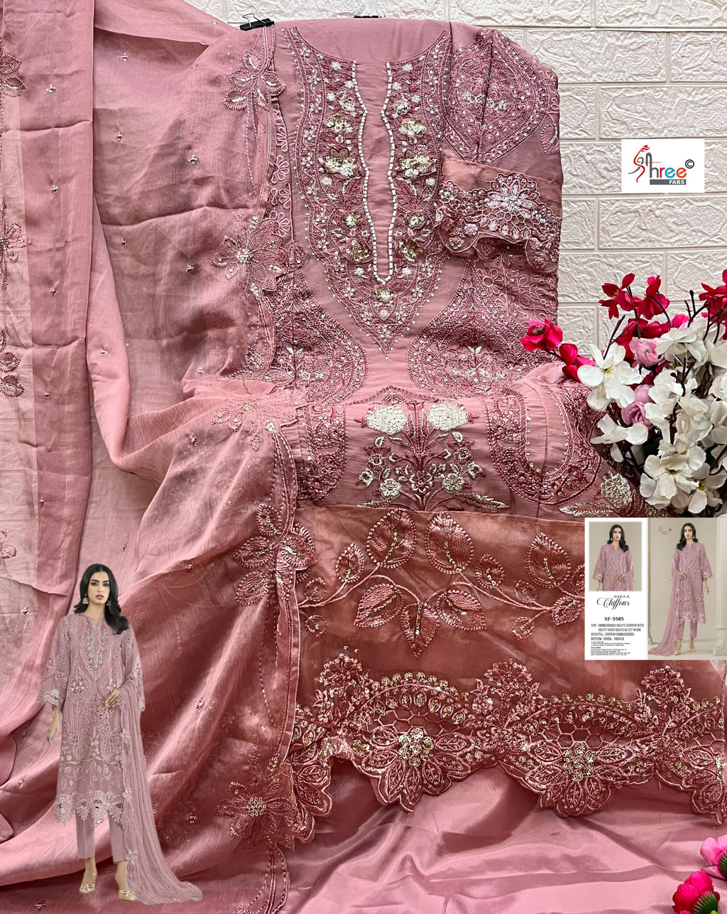 Step into luxury ethnic fashion with SHREE FABS© Surat – Design No. SF-5585, a premium chiffon suit set designed for weddings, festive occasions, and party wear. This elegant ensemble showcases rich embroidery with detailed hand craftsmanship for a royal and sophisticated look.