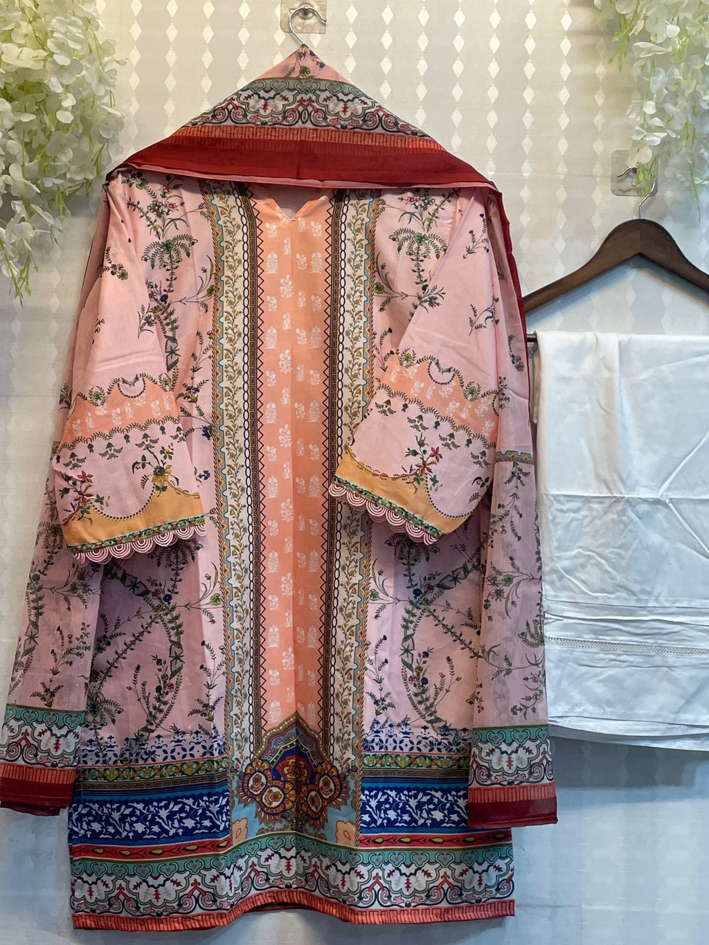 Vs 12021 Elegant Pink Floral Printed Lawn Suit