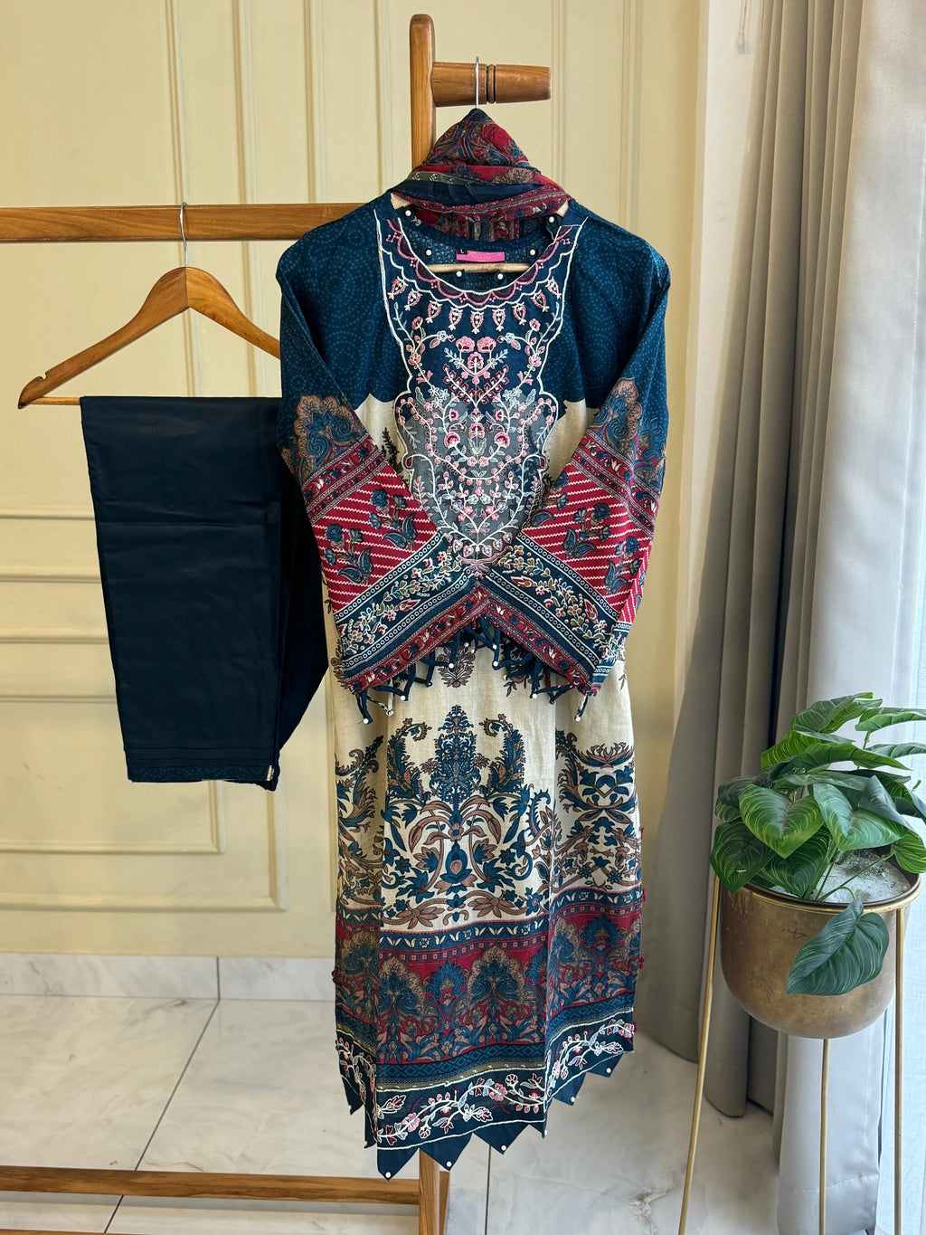 AL Zohaib 1287 A Blue Cotton Embrodairy Floral Pakistani Suits