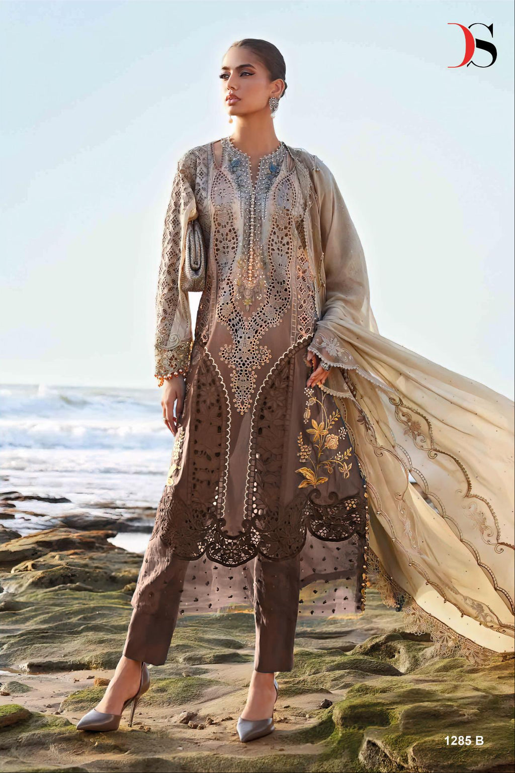 Deepsy Suits 1285 B Pure Cotton With Heavy Self Embroidery Attached Patches Work Lawn Suits