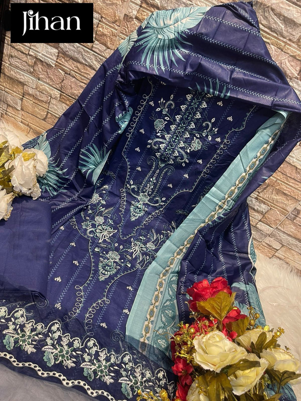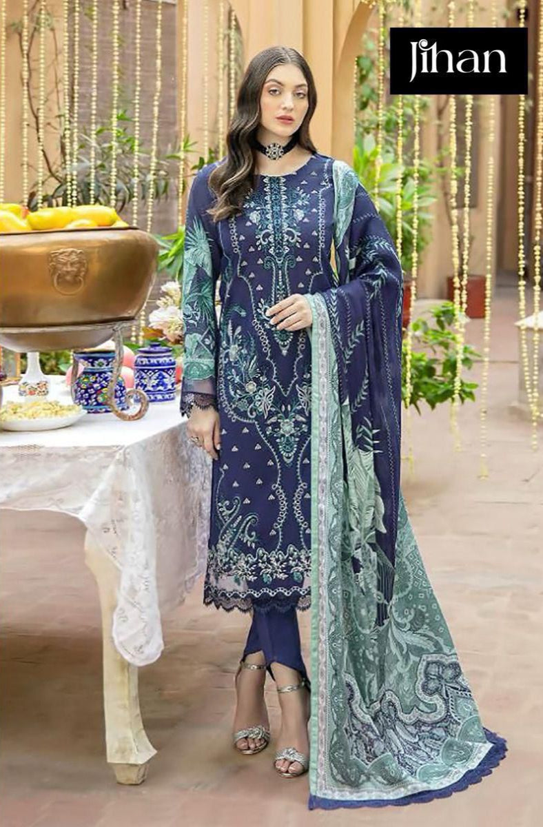 Jihan 3403 Chevron Luxury Lawn With Heavy Self Embroidery N Patch Work Suits