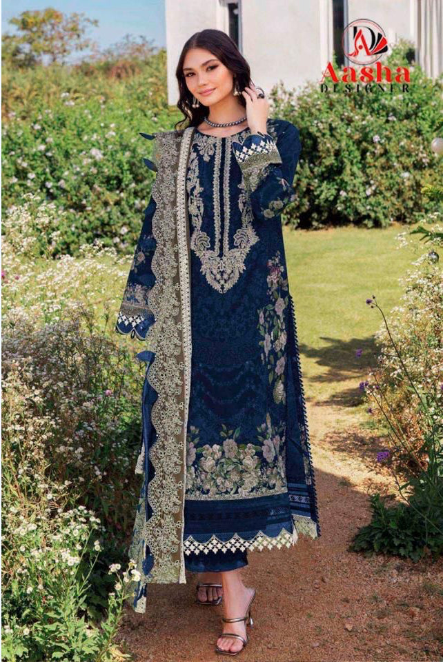 AASHA DESIGNER 1170 Cotton Print Suit with Embroidery & Designer Dupatta