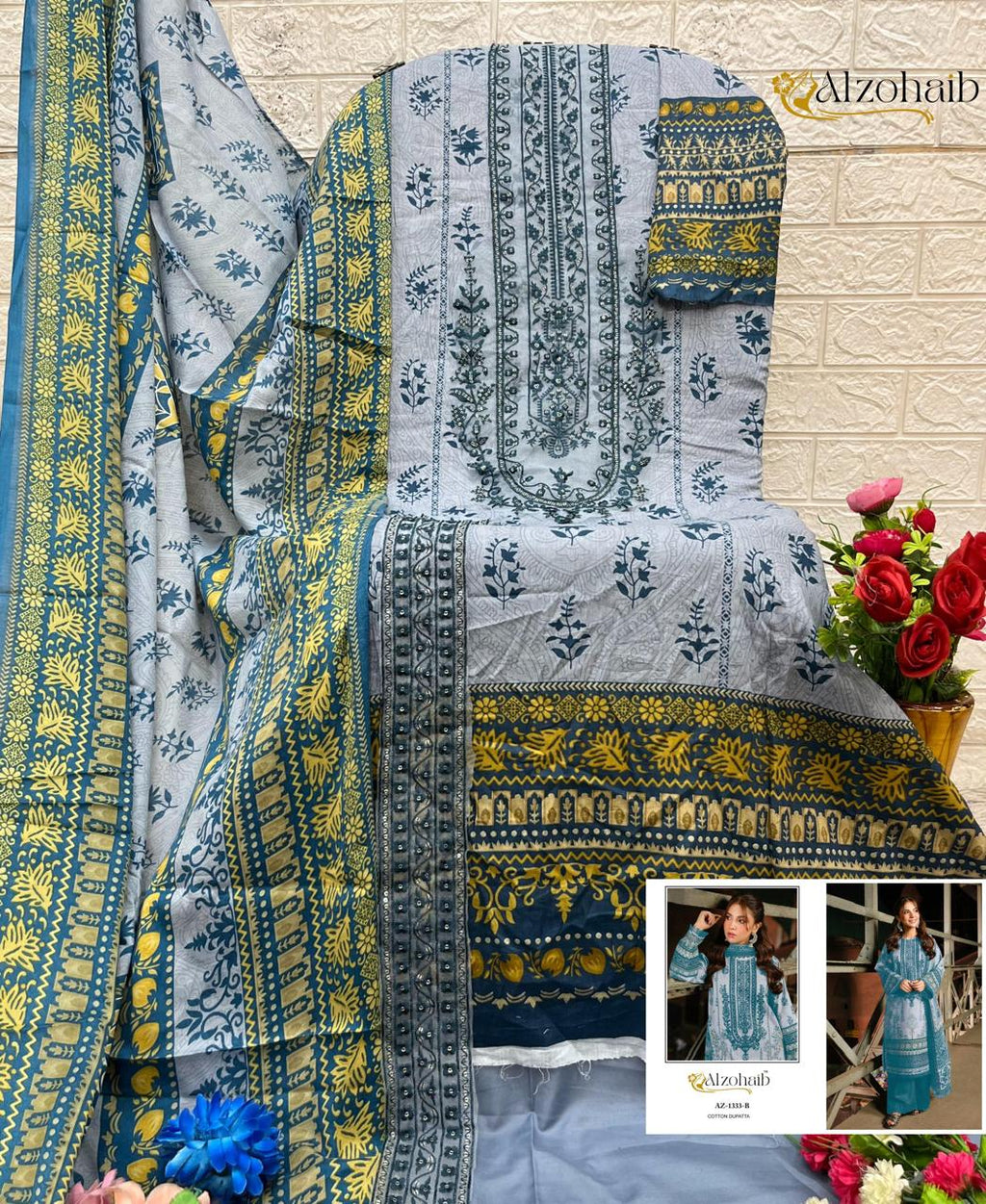 AL Zohaib AZ 1333 B Pure Cotton Print With Heavy Embrodairy Patches Work Pakistani Suits