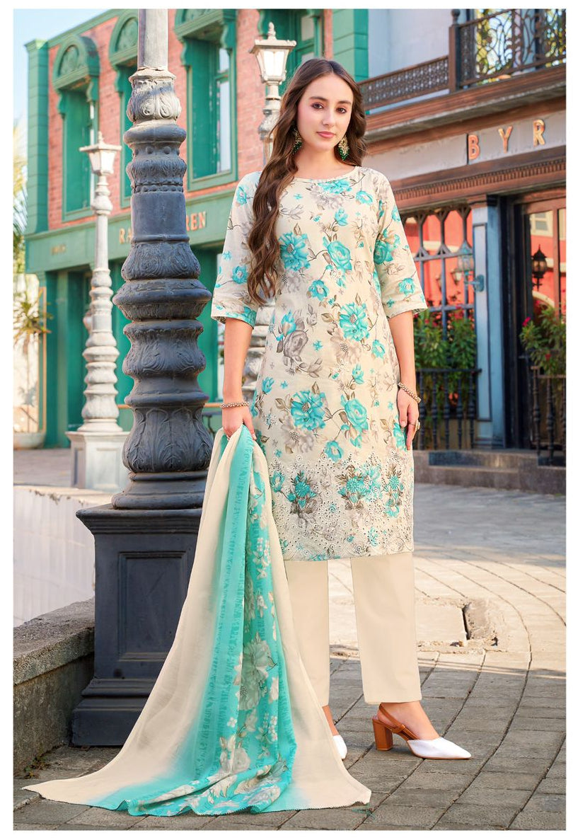 Al Zohaib Az 1431 Luxury Floral Pure Cotton Kurti Set With Designer Dupatta