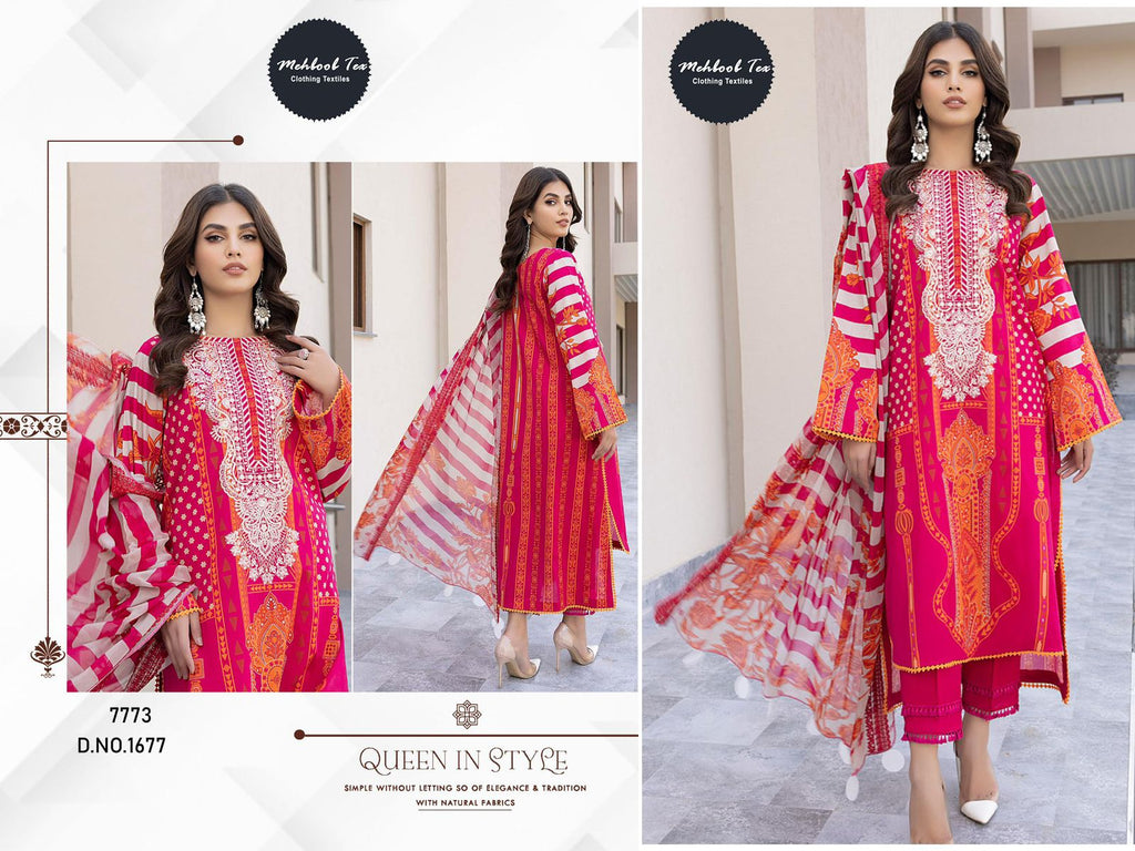 Mehboob Tex 1677 Pure Cotton Print With Self Embroidery Work Pakistani Suits
