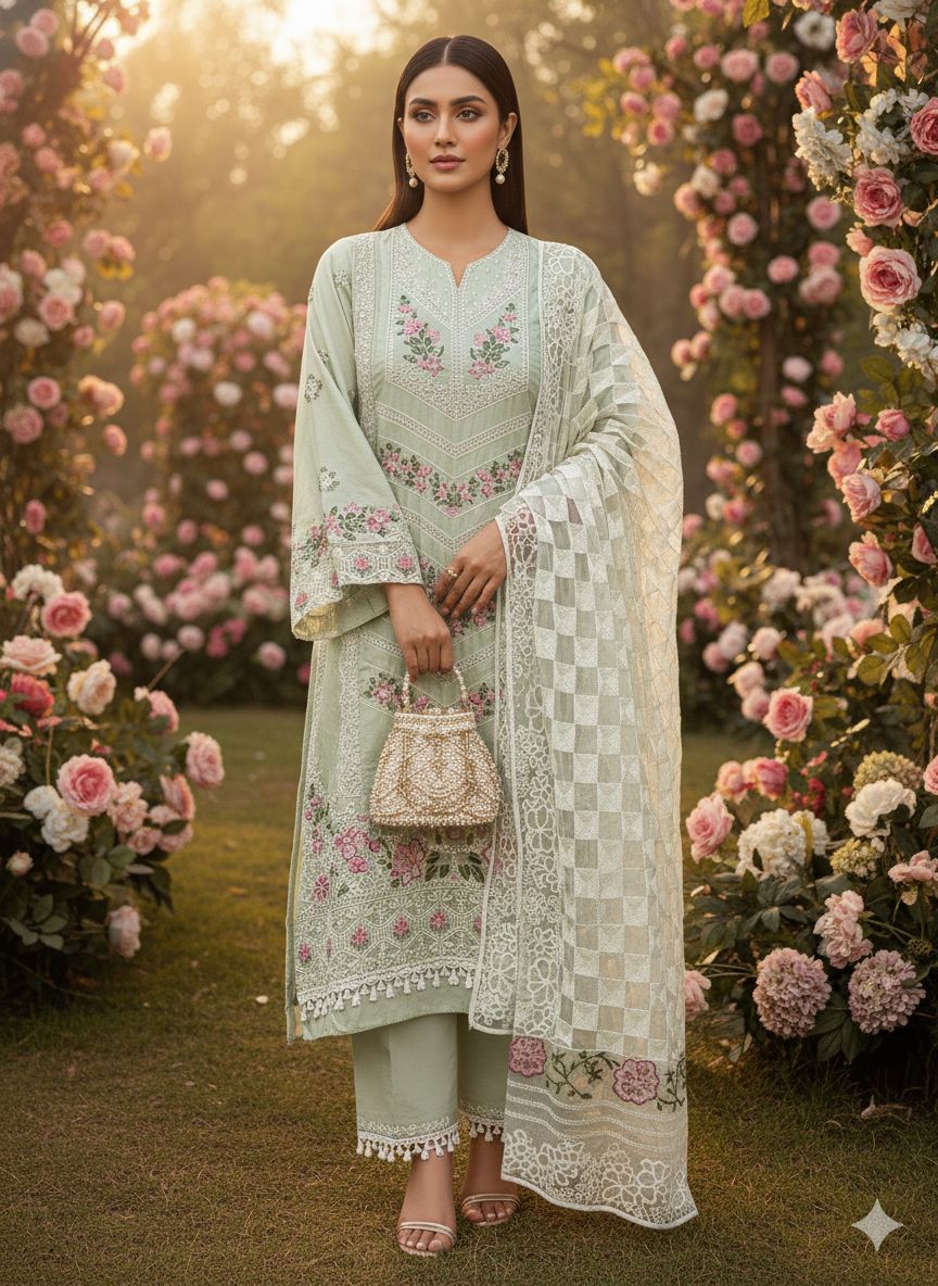 Ziaaz Design 916 Cambric Cotton Embroidery Work Semi Stitched Pakistani Outfit