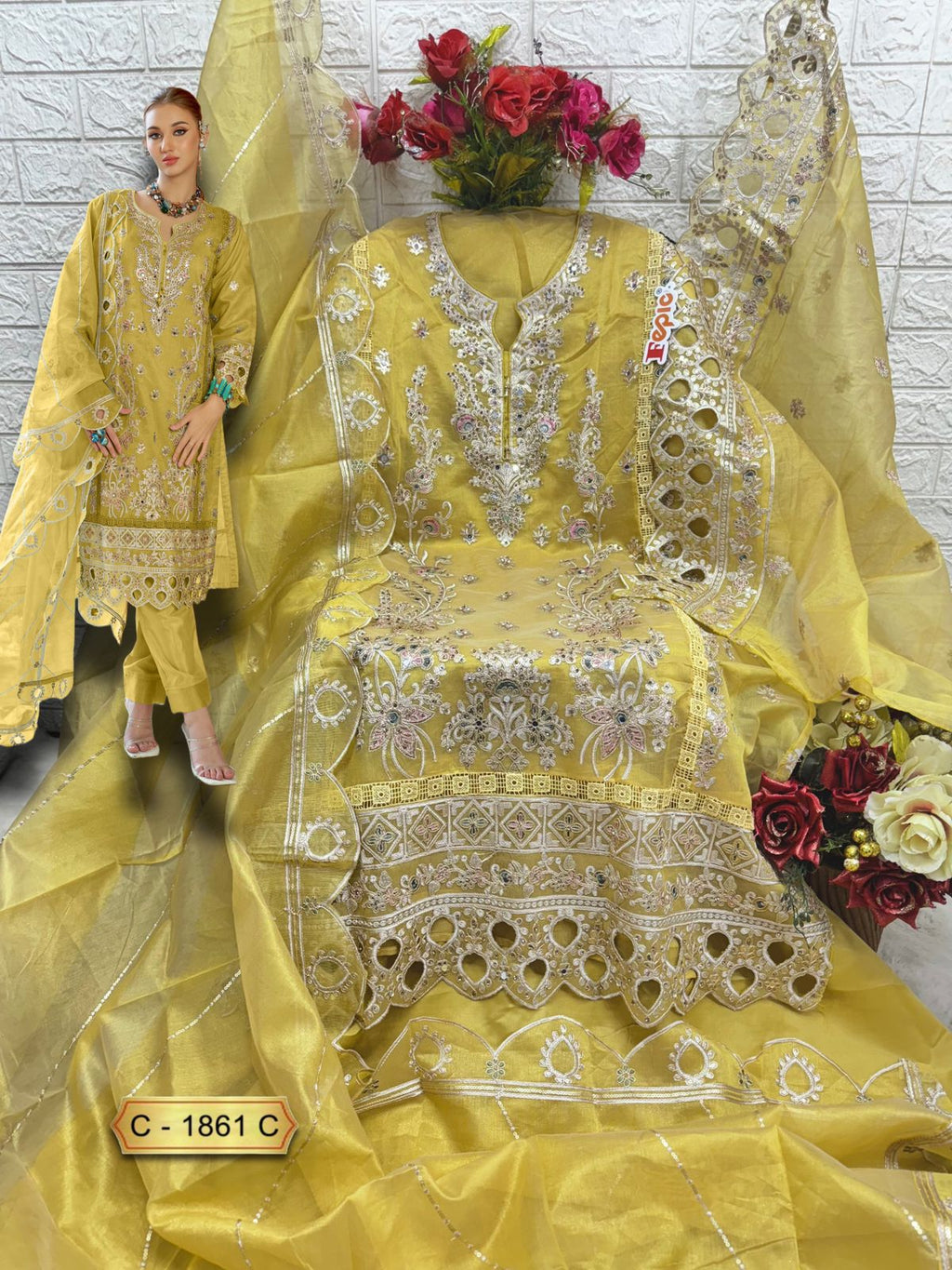 Fepic Rosemeen C 1861 B Shimmer Vichitra Embroidery Worked Pakistani Suits