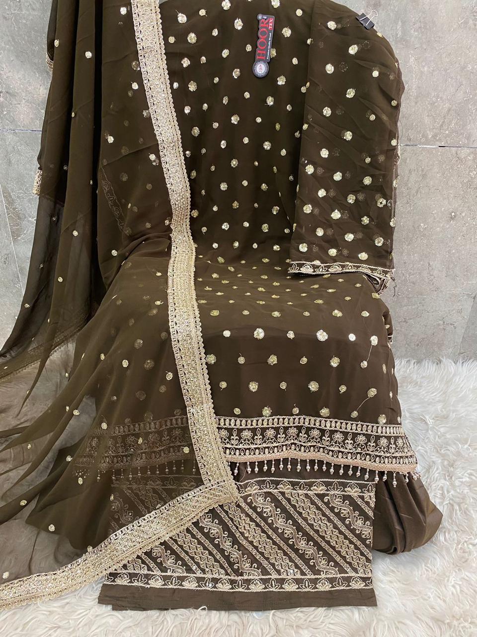 Hoor Tex H 402 Dark Brown Georgette Unstitched Pakistani Suit