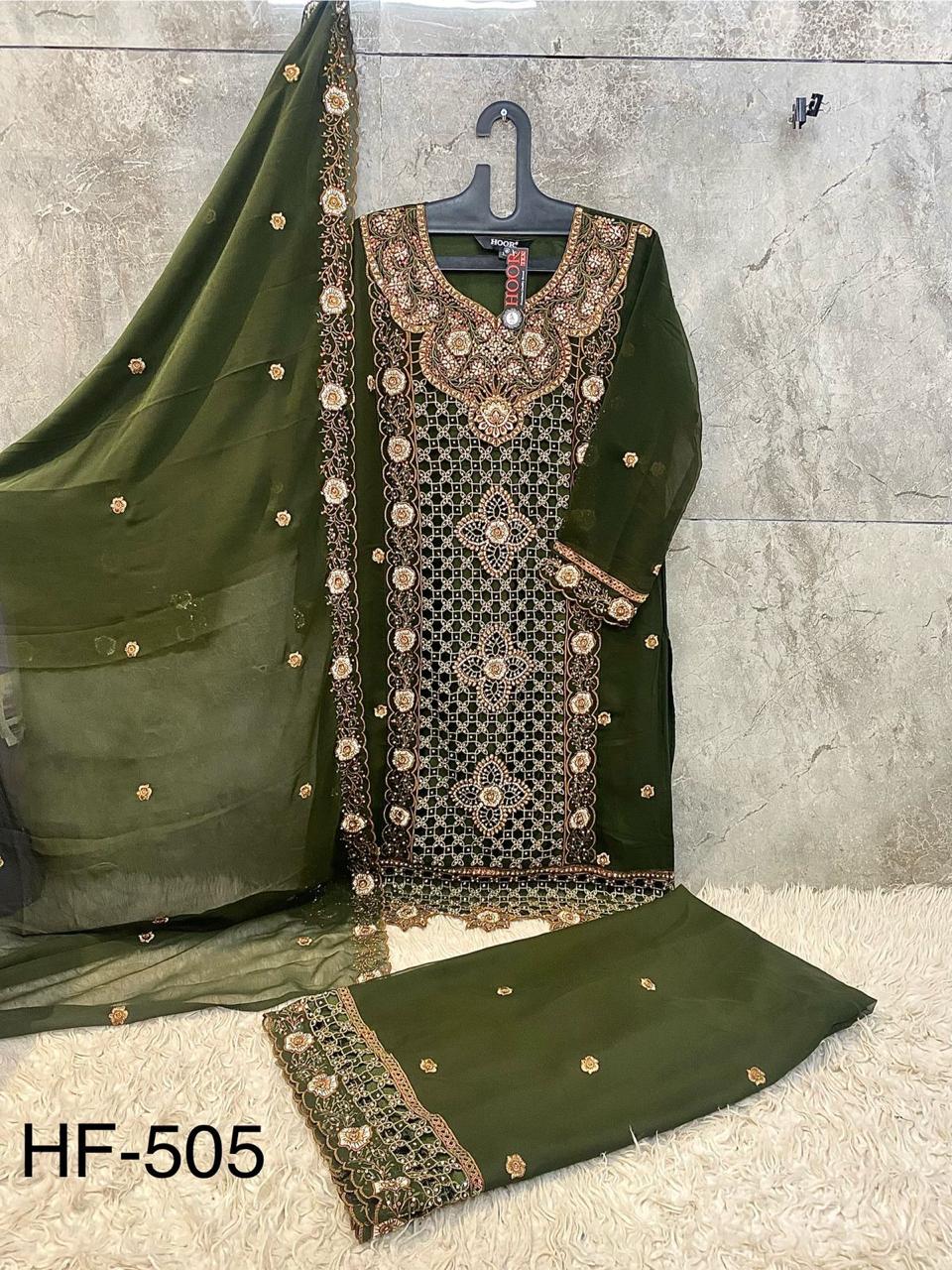 Hoor Tex HF 505 C Heavy Georgette With Zarkan Work Pakistani Suits