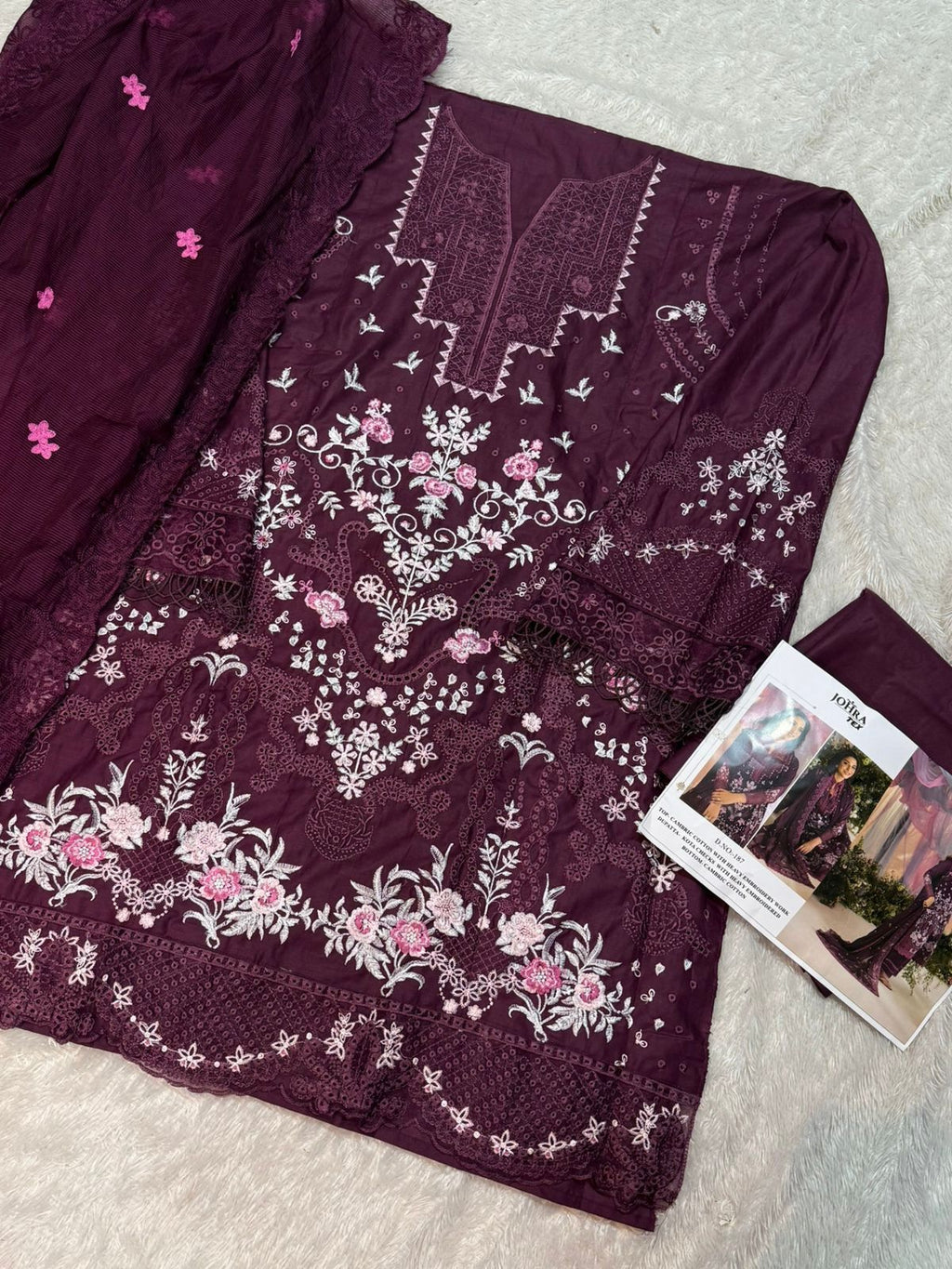 Johra Tex Jt 187 Eid Special Cambric Cotton Embroidered Suit