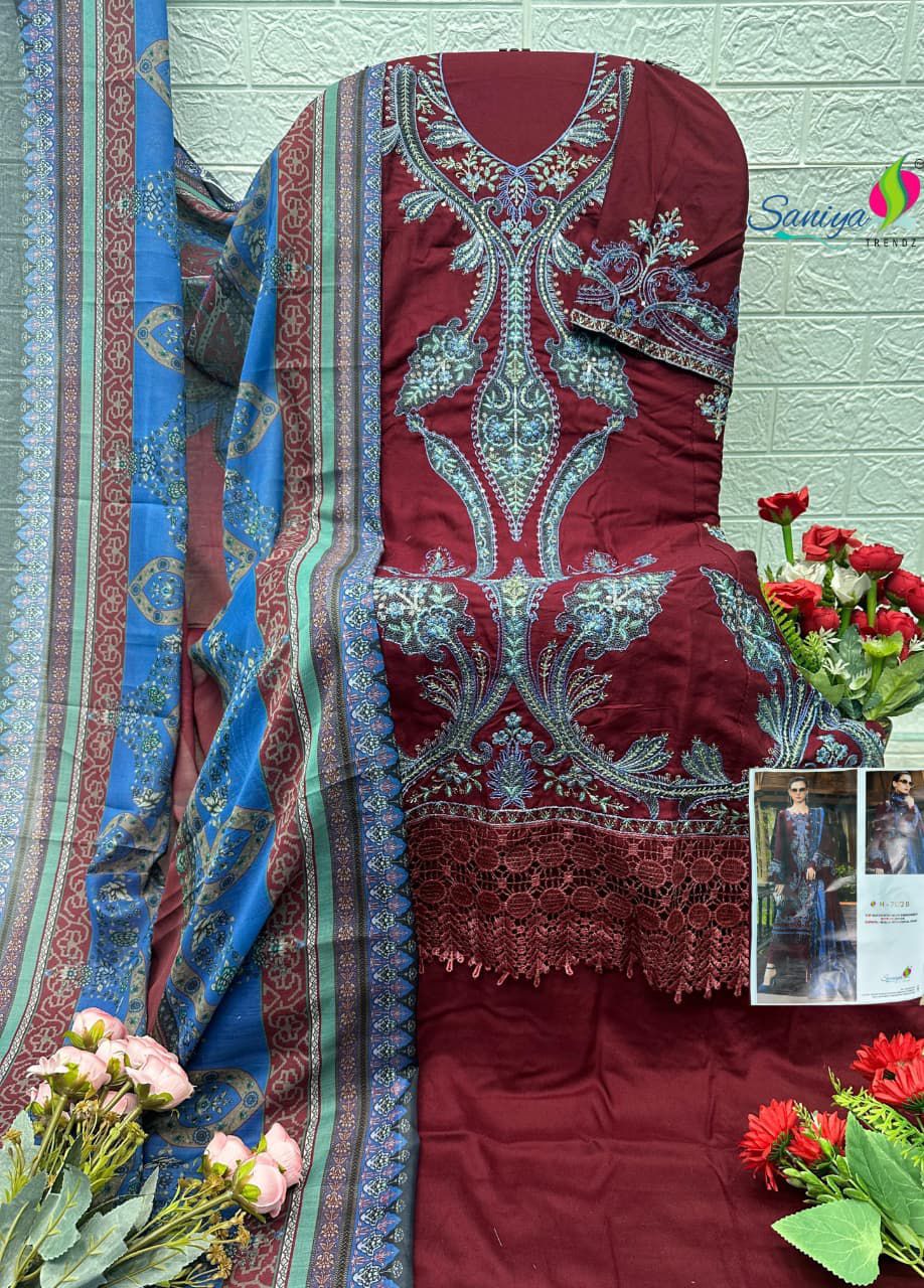 Saniya Trendz 7172 A Rayon Cotton Embroidered Work Pakistani Suits
