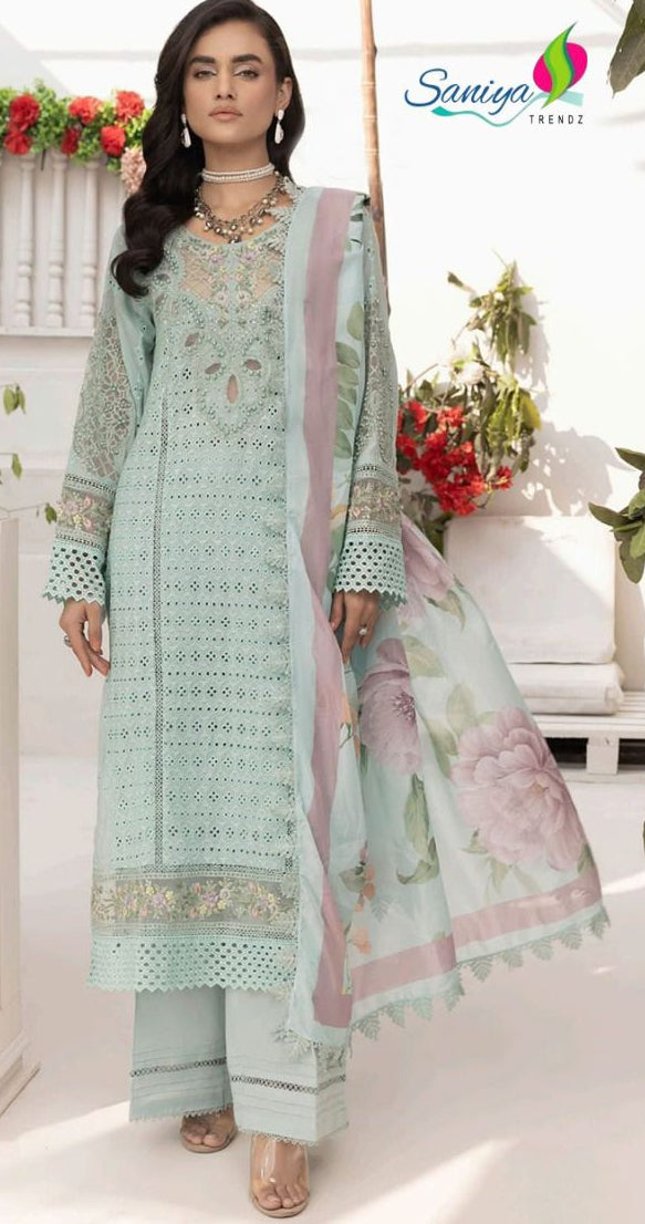 Saniya Trendz Design No 34002 Adan Libaz Pure Cotton Embroidered Work Suits