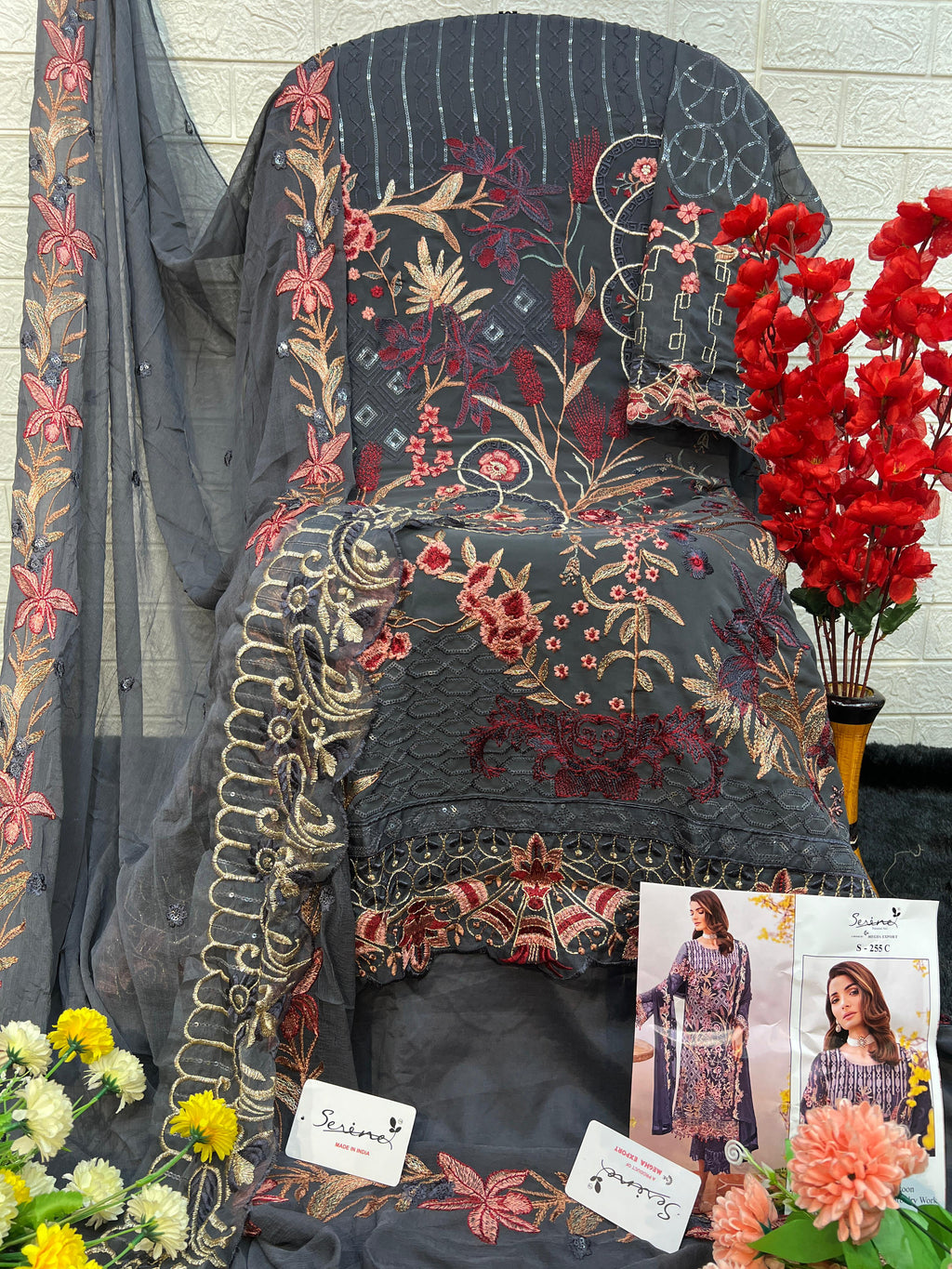 Serine S 255 C Fox Georgette Heavy Embroidered Worked Suits