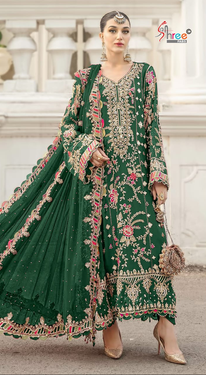 Made from heavy chiffon fabric, featuring rich embroidery enhanced with hand Khatli work, adding intricate detailing and a graceful finish.