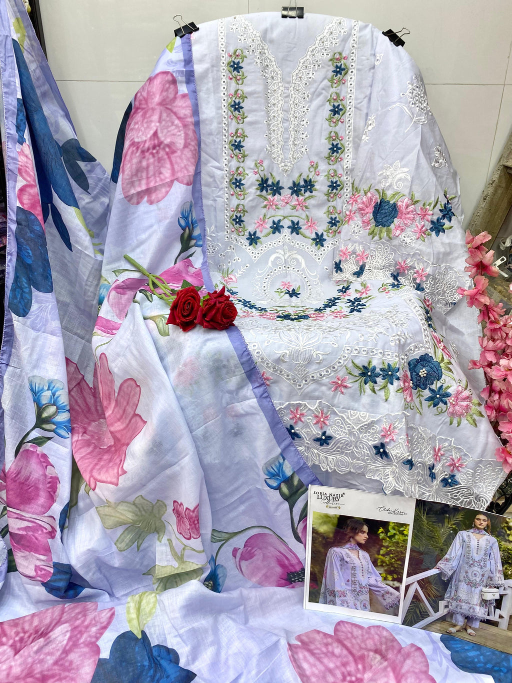 Sobia Nazir Sn 1050 Lawn Embroidered Chikankari Work With Pearl Work Suits