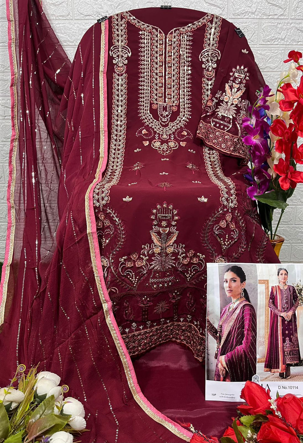 Zaha 10114 Designer Party Wear Maroon Anarkali Style Pakistani Suit