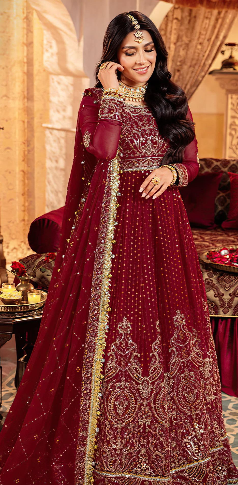 Zaha 10358 A Butterfly Net With Embroidery Work Wedding Wear Pakistani Suits