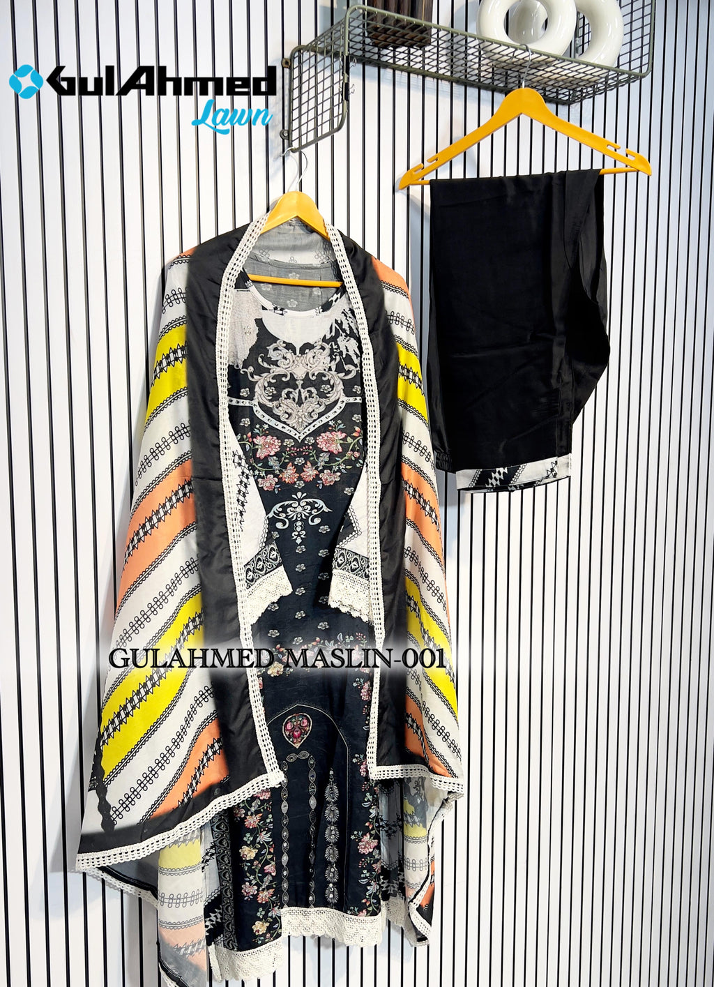 Gul Ahmed Maslin 001 C Viscos Maslin Self Printed With Lace Miror Work Pakistani Pret