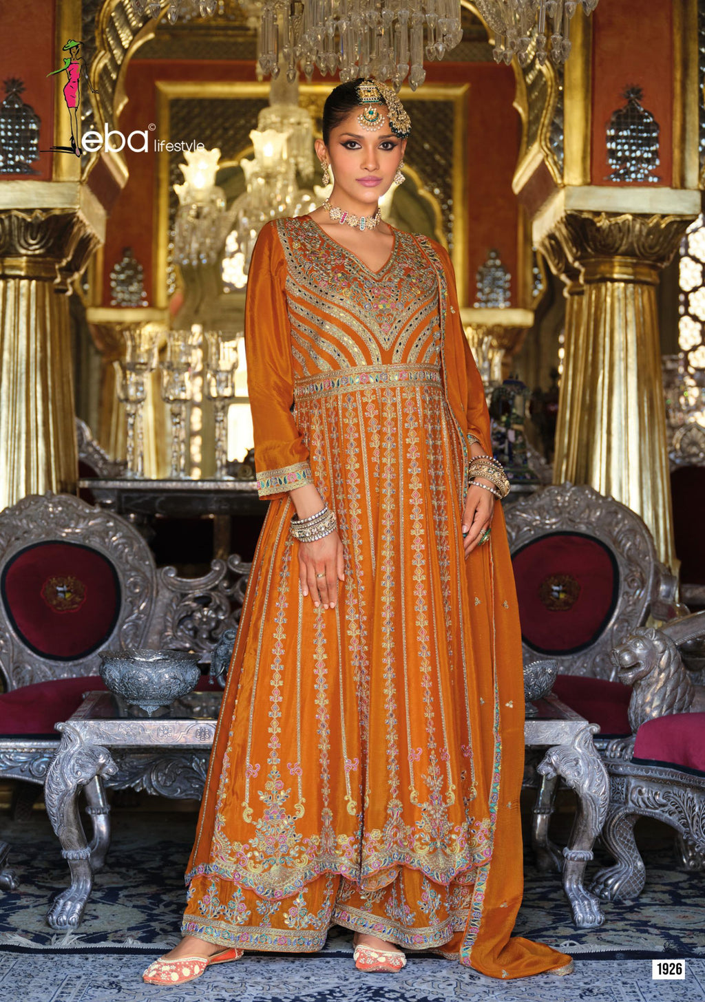 Eba 1926 Heavy Chinnon With Embroidery Work Traditional Suits