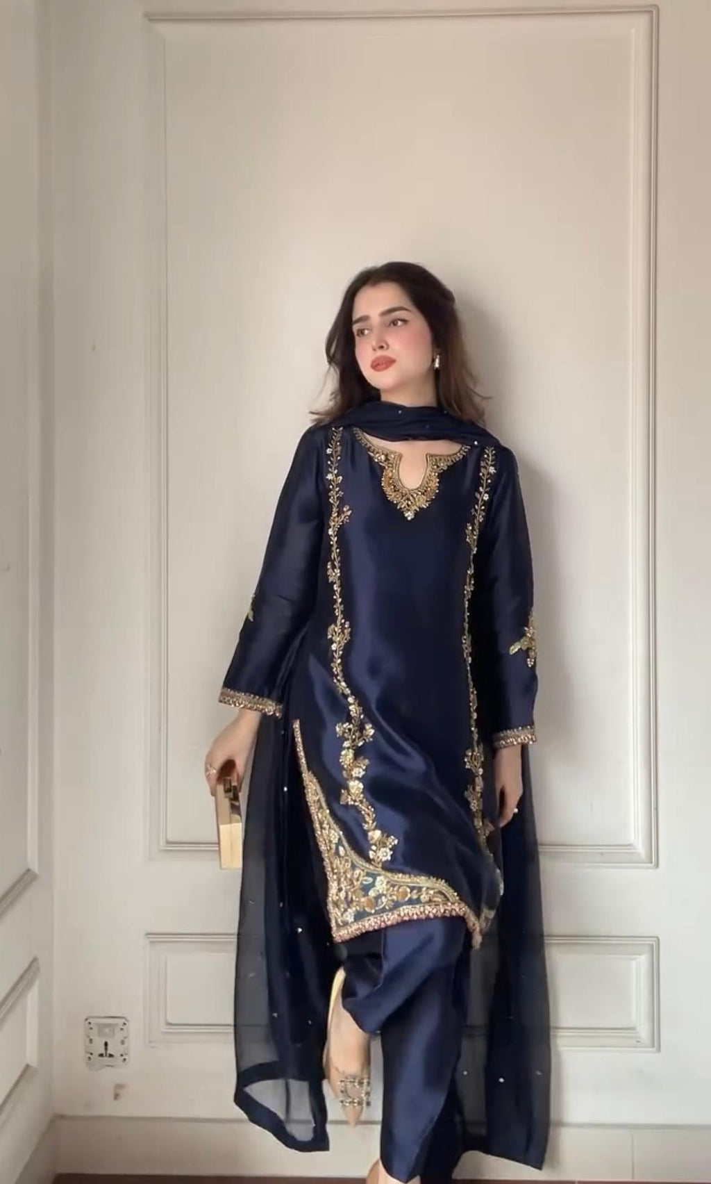 Dupatta Fabric: Heavy Pure Soft Organza Silk Multi Needle Embroidery Work.