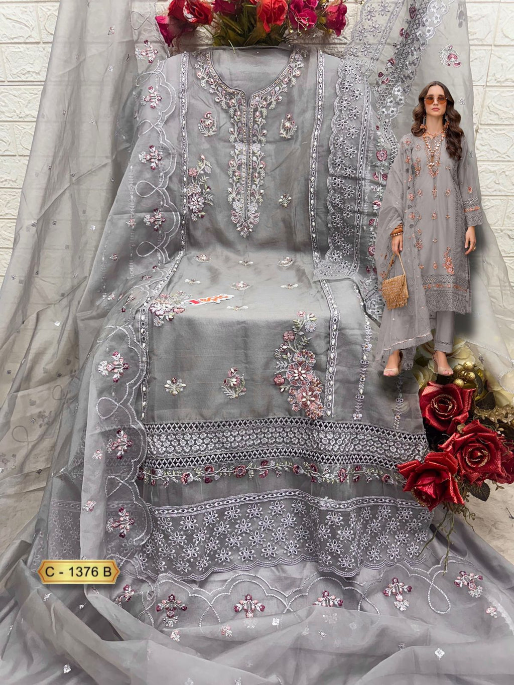 Fepic Rosemeen C 1376 B Organza Embroidered Worked Suits