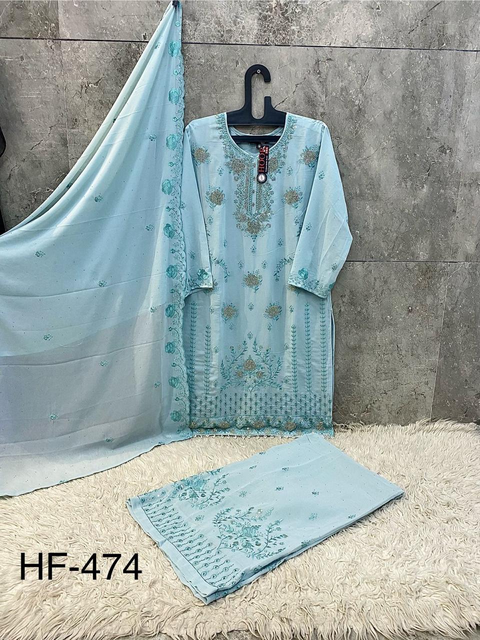 Hoor Tex HF 474 D Heavy Georgette With Zarkan Work Pakistani Suits