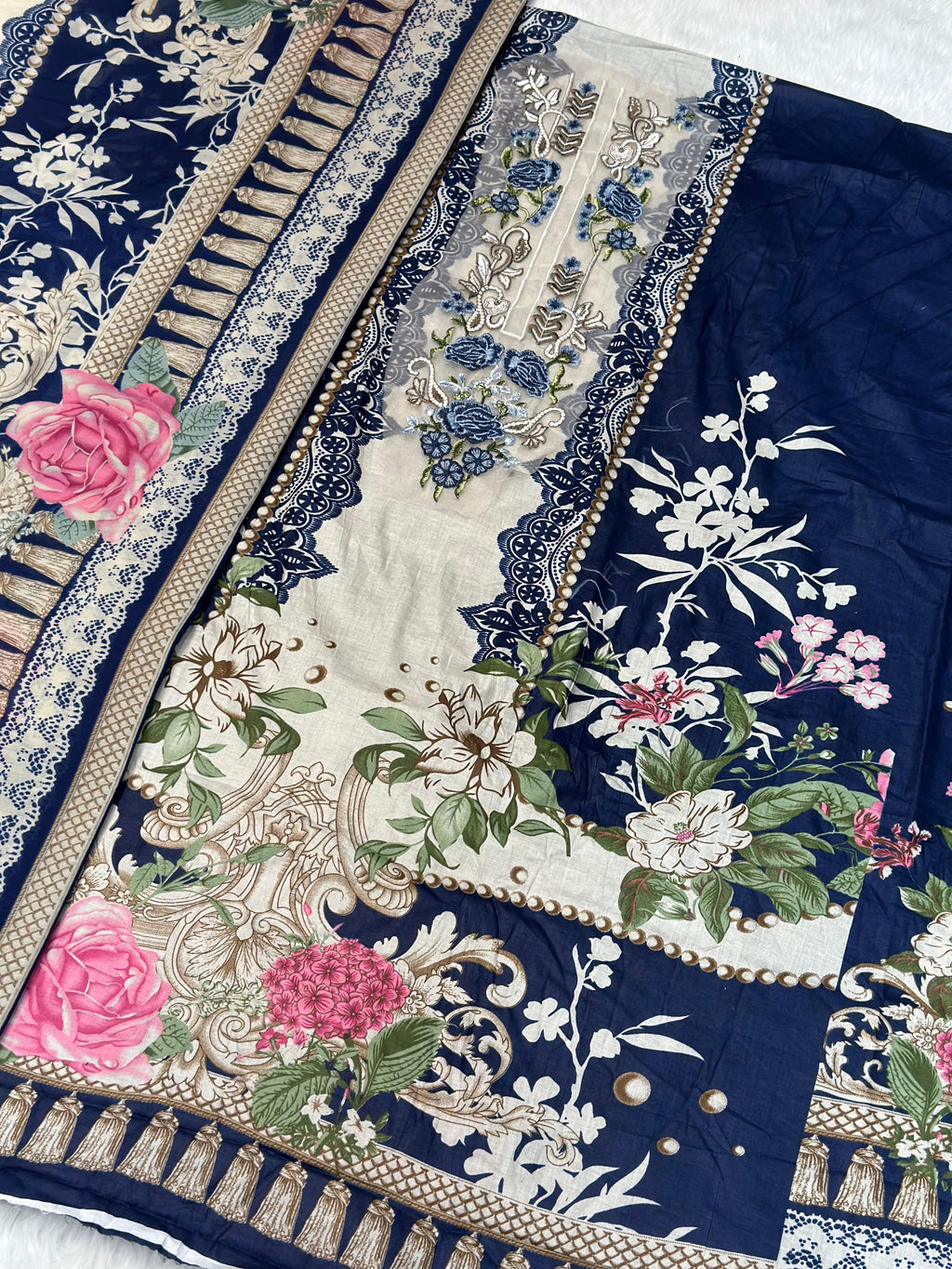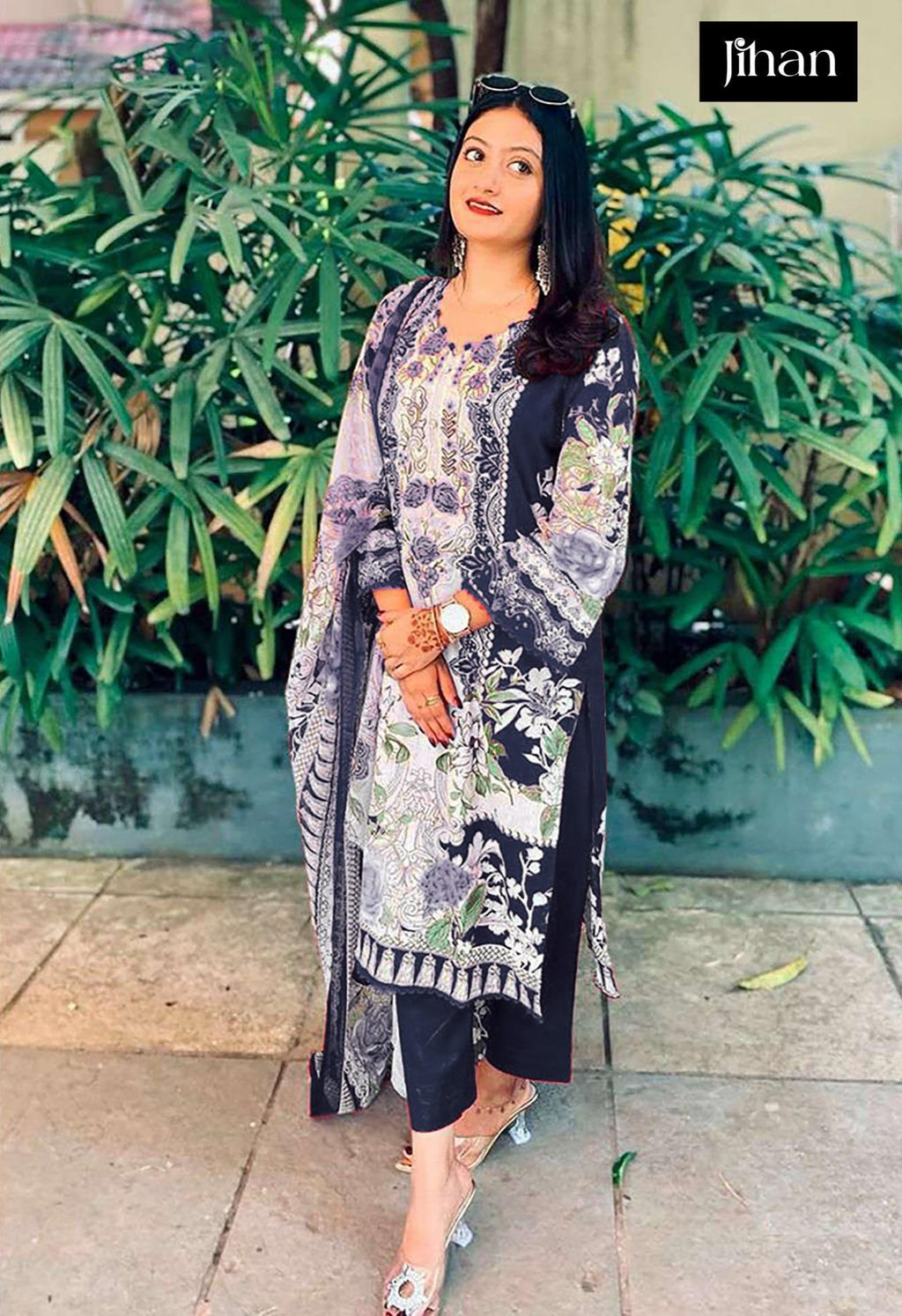 Jihan 3814 B Print With Exclusive Embroidery Patches Work Lawn Suits