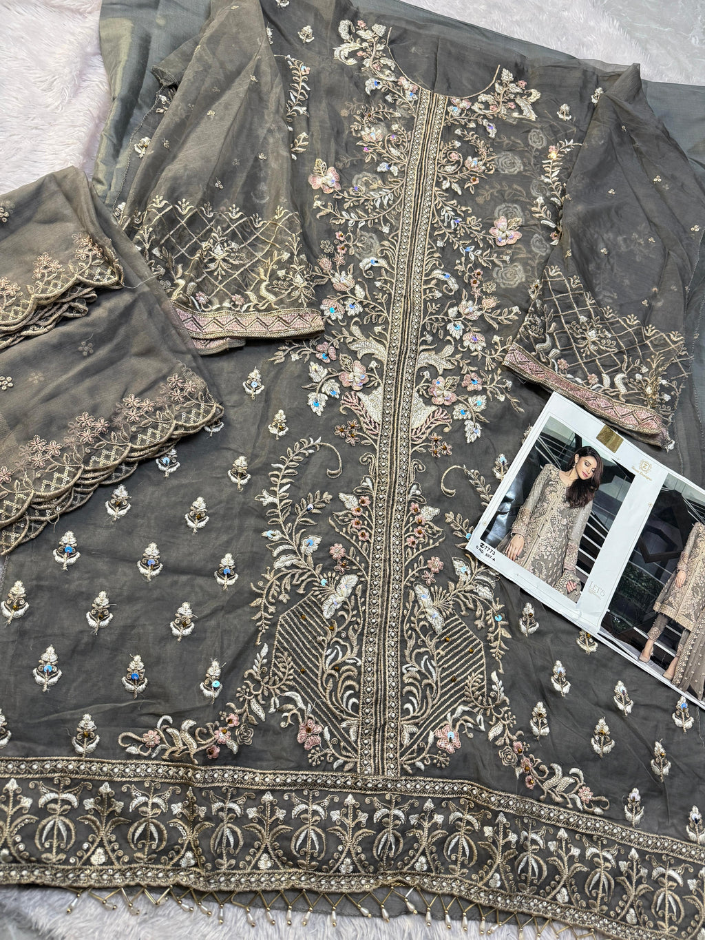 Ziaaz Designs Code 807 Organza Heavy Handwork Embroidery Semi Stitched Pakistani Outfit
