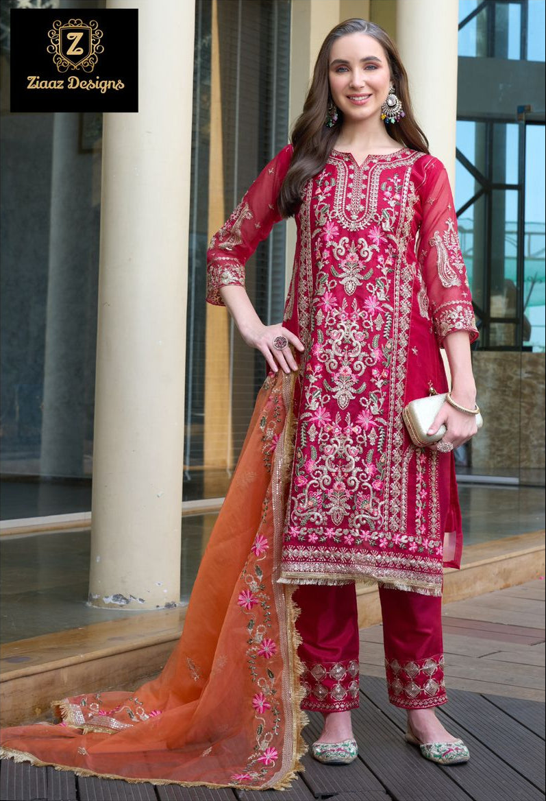 Ziaaz Designs Code 861 Organza Semi Stitched Full Heavy Handwork Suit